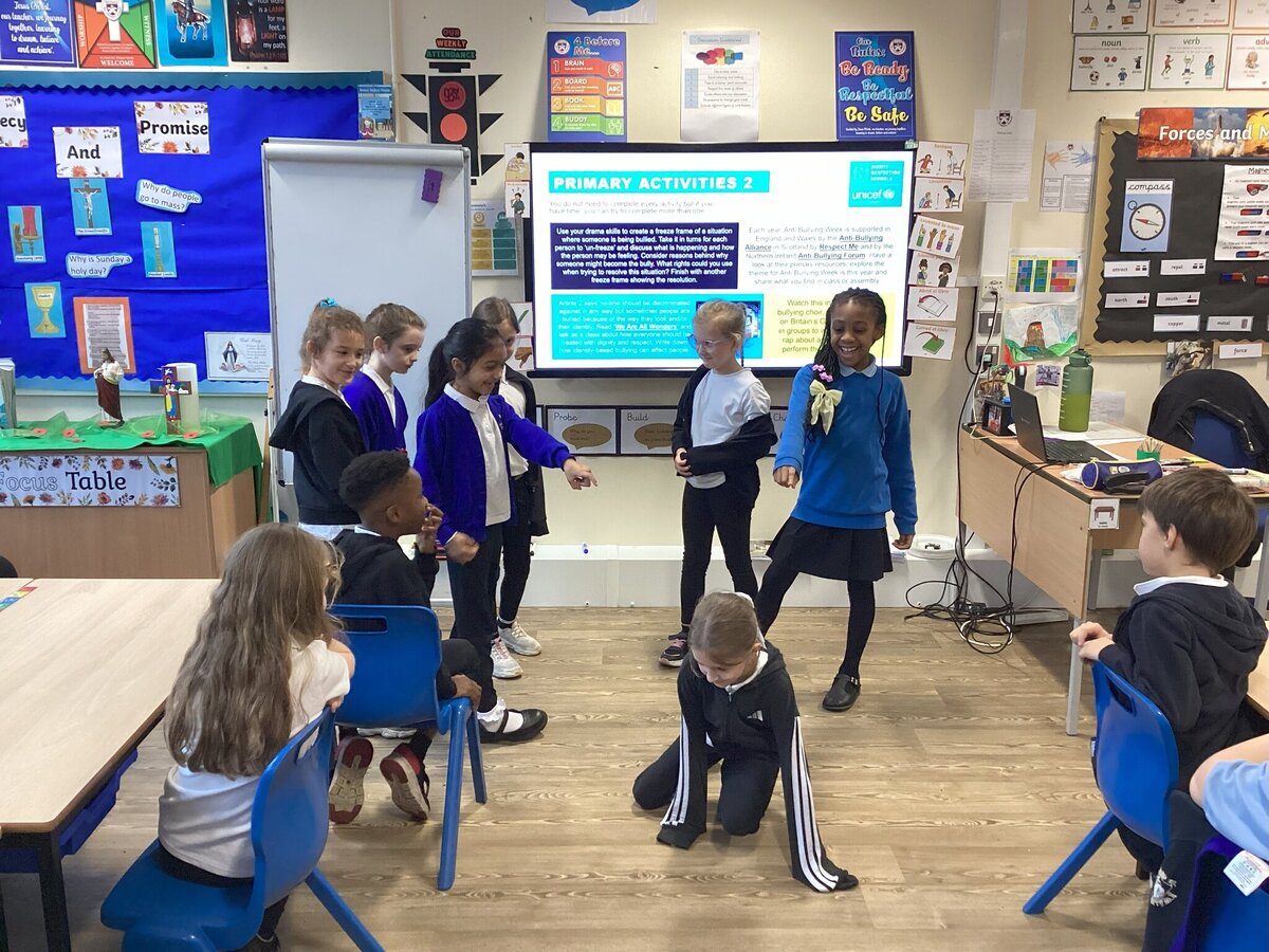 For Anti-bullying week the children have been role playing different scenarios to understand what they should do in situations.